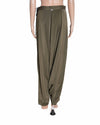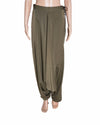 431-88 by Shweta Kapur Green Harem Pants is rendered in premium fluid fabric in a sophisticated muted olive green. The design is defined by its contemporary voluminous harem silhouette, featuring a sophisticated high-waisted frame. A standout feature is the architectural wide-leg construction with tapered ankle detailing. Finished with a sleek reinforced waistband, a secure concealed fastening, and precision edge-stitching.