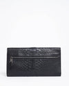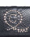 Alexander McQueen Foldover Clutch Bag embodies the brand’s iconic edgy glamour. Crafted from luxurious black python-embossed leather, it features a rich, tactile texture and a sleek foldover silhouette. The front flap is adorned with bold, polished silver-tone studs arranged in a striking pattern, adding dramatic visual impact. A statement accessory that perfectly blends sophistication with McQueen’s signature rebellious aesthetic.