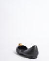 Alexander McQueen Flats in black. These distinctive shoes, appearing as sleek ballet flats in the image, feature a striking gold-tone skull embellishment on the front, adorned with subtle crystal details for a touch of macabre glamour. Crafted from soft black leather, they offer both comfort and Alexander McQueen's iconic rebellious aesthetic.