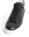 Elevate your casual style with these iconic preloved Alexander McQueen Round Toe Men's Sneakers in classic black and white. Featuring a sleek leather upper, the signature oversized rubber sole provides both comfort and a distinctive, contemporary aesthetic.