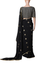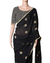 Preloved Anita Dongre black Saree without Blouse.Golden border at the sides with butti work.