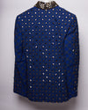 Arjun Khanna's blue Bandi blazer features golden stitching and box-type crystal embellishments, adding a touch of elegance and unique flair.