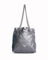 Balenciaga Handbag is meticulously crafted from premium metallic silver crushed calf leather, featuring a purposefully distressed and wrinkled texture that provides a unique, light-catching depth. The design is defined by its versatile drawstring silhouette, offering a relaxed, deconstructed profile that expands to accommodate daily essentials. A standout feature is the chunky silver-tone chain strap. The bag is finished with a discreetly embossed "BALENCIAGA PARIS" logo in white lettering on the front.
