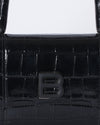 Balenciaga Hourglass Crocodile Embossed Crossbody In Black