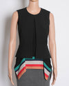 BCBG Asymmetric Top in black is perfect for both professional and casual settings. The top features a modern, sleeveless design with a structured, tailored feel. Its standout feature is the chic asymmetric hemline, which adds a contemporary edge and a flattering drape. The solid black color ensures versatility, making it easy to pair with trousers, skirts, or even a pair of jeans. A discreet back zipper closure allows for a clean and seamless fit.