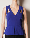 This preloved BCBG blouse features a flatter v neckline and is completed with a black zipper at the back