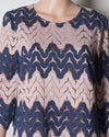 This preloved BCBG Wave Dress follows a blue and beige wave pattern.