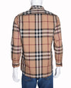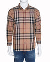 Burberry Brit Men's Long-Sleeve Shirt featuring the iconic Nova Check pattern in the traditional colorway of beige, black, white, and red accent lines. The shirt is a button-down style with a structured collar, buttoned cuffs, and a single chest pocket.