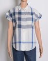 Burberry Checkered White & Blue Button Down Women's Shirt