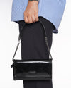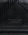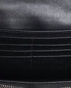 Burberry London clutch wallet features the brand’s signature plaid pattern embossed on glossy patent leather in classic black. Designed with a zip-around enclosure and an additional front flap compartment, it offers both style and practicality.