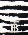 Burberry Zebra Print Lola Shoulder Bag is rendered in premium calfskin leather featuring a striking black and white zebra-stripe print. A standout feature is the silver-tone Thomas Burberry (TB) monogram hardware prominently displayed on the front flap, serving as a definitive mark of the house’s updated luxury identity. Finished with a sophisticated silver-tone chain-link strap and a coordinating black leather shoulder pad for comfort.