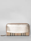 Pre-loved designer luxury Burberry bag comes up with classic checkered detailing in the front and the back as well. It also has golden hardware with gold flap at the front with Burberry brand detailing embossed. It also has a Burberry classic logo embroidered at the back zip around wallet with compartments inside, spacious Wallet