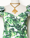 Caroline Constas Off-The-Shoulder Leaf Printed Crop Top