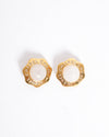 Elegant and timeless, these vintage Chanel earrings feature a luminous faux pearl center framed in a textured gold-tone setting, subtly stamped with the iconic CC logo. Perfect for adding classic Parisian sophistication to any ensemble.