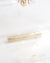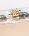 The Charlotte Olympia Clear Perspex Clutch is a striking accessory that perfectly balances playful design with luxury. Crafted from transparent perspex, the clutch showcases a sleek box shape adorned with the brand’s signature spider clasp. Inside, the clutch features a rich gold-colored lining that adds a warm, elegant contrast to the clear exterior. This unique detail enhances its sophisticated appeal, making it a standout piece for evening events and special occasions.