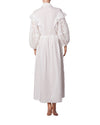The Chloe Frill Dress in white features playful puff sleeves and a flowing hem, creating a fun and trendy look. With a collared neckline and button front closure, it offers a flattering silhouette enhanced by an elasticized waist. The flared panel from the waist to the shoulder adds an elegant touch, making this dress perfect for both casual and semi-formal occasions.