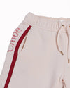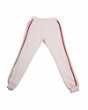 Chloe Joggers for 12 years. These stylish joggers are crafted from a soft, light pink-colored fabric, ensuring a comfortable fit for all-day wear. They feature a relaxed, tapered silhouette with a drawstring waist and bold red stripes down the sides, adding a sporty and fashionable touch.