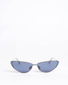 Christian Dior Women's Sunglasses featuring a distinct angular, aggressive cat's-eye silhouette. The frame is thin, gunmetal-toned metal and is a semi-rimless design, primarily framing the bottom and outer edge of the lens. The lenses are solid black. The frames include subtle metallic accent detailing near the upper corners.