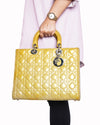 Christian Dior Large Mustard Yellow Cannage Patent Leather Lady Dior Bag
