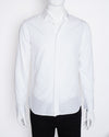 Christian Dior Shirt in classic white. This versatile button-down shirt is crafted from a high-quality, crisp cotton fabric. The clean, modern silhouette is complemented by the subtle and recognizable "Dior" logo on the collar, a hallmark of the brand's sophisticated elegance.