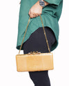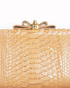 Christian Louboutin beige shoulder bag is an exquisite example of high-fashion artistry, blending rare exotic materials with the brand's signature Parisian flair. This elegant evening bag is meticulously crafted from genuine python skin in a warm, sophisticated beige hue. The design is defined by its slim, rectangular silhouette and a unique gold-tone bow clasp at the top, which is subtly engraved with the iconic Louboutin signature. For versatile styling, it features a delicate gold-tone chain-link shoulder strap.