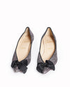 Christian Louboutin Glitter Kitten Heels are a dazzling fusion of high-octane glamour and practical sophistication. These pumps are rendered in a multi-tonal sparkling glitter finish, featuring a dense application of silver and charcoal-hued particles that catch the light from every angle.The design is defined by its elegant pointed-toe silhouette, which is beautifully accented with a large, structured black satin bow at the vamp.