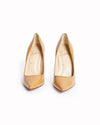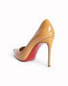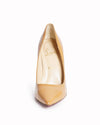 Christian Louboutin Patent Leather Pumps are rendered in premium patent leather in a sophisticated beige hue, The design is defined by its iconic sharp pointed toe and low-cut vamp. A standout feature is the signature Christian Louboutin gold-stamped insole, set against a creamy leather lining for maximum comfort and brand recognition. Finished with the Maison's legendary vibrant red lacquered sole.