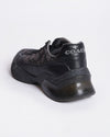 Coach CitySole Runner shoes in black. These versatile sneakers feature a sleek low-top silhouette with a modern mix of materials, including classic black leather and a subtle signature "C" monogram canvas in a tonal grey & black, creating a refined look. The comfortable lace-up design and durable CitySole technology offer all-day comfort and support.