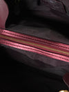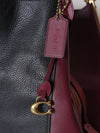 Preloved Designer maroon luxury bag comes up with golden hardware all over the bag with a long chain slider with Coach detailing all over the bag and the inner lining is also printed. It has two top handles with magnetic button closure and multicoloured detailing all over the bag with four gold pads.