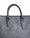 Coach Dylan Tote Bag is a versatile and structured accessory that perfectly balances iconic house codes with modern functionality. This tall, rectangular tote is rendered in the signature Coach Monogram coated canvas in a sophisticated black and charcoal colorway, offering a durable and scratch-resistant finish. The design is defined by its clean lines and is accented with tonal black leather trim and dark metallic hardware, including a discreet "COACH" logo on the front.