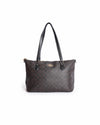 Coach Zip Top Tote in Signature Canvas is rendered in Coach’s signature coated canvas in a rich mahogany and black "C" monogram. A standout feature is the polished gold-tone hardware, including the raised Coach Horse and Carriage logo that anchors the front of the bag with a touch of classic shine. Finished with a secure full-length top zip closure and slender, reinforced leather handles.