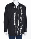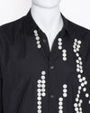This Comme des Garçons shirt showcases the brand's signature deconstructed and innovative design. The classic black button-down is transformed with clusters of small white buttons arranged asymmetrically, creating a sculptural, tactile effect. Oversized cufflink holes add an avant-garde twist. With a relaxed, oversized fit and a classic collar, this unisex shirt is a wearable piece of art.