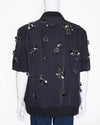 Dhruv Kapoor Embellished Jacket, a contemporary piece blending edgy design with intricate detailing. Crafted in a sleek black base with a vibrant green inner lining, this jacket stands out with hand-applied 3D floral embellishments on the sleeves and shoulders. The asymmetrical front zip closure adds a modern touch, making it perfect for elevating evening outfits or adding a luxe twist to casual wear.