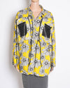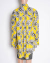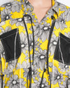 Dhruv Kapoor Floral Button Down Shirt. This striking piece is a perfect representation of the designer's bold and artistic vision. The shirt features an eye-catching, oversized floral print in white and grey, set against a lively yellow background. The relaxed, oversized fit and fluid fabric give it a modern, genderless silhouette that is both comfortable and stylish. This versatile shirt can be worn on its own. It's a testament to Dhruv Kapoor's unique blend of fearless self-expression and meticulous craftsmanship.
