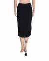 DKNY Black Skirt is rendered in a premium midnight black fabric. A standout feature is the subtle horizontal texturing throughout the fabric, which provides a refined depth to the solid black base without compromising its sleek profile. Finished with a discreet tonal waistband and a classic midi-length hemline.
