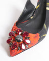 Dolce & Gabbana Floral Print Leaher Crystal Embellished Pumps