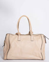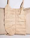 This structured satchel bag features a unique pleated front panel design, giving it a stylish, textured look that stands out while maintaining a refined elegance. Crafted from pebbled leather, it offers durability along with a soft, luxurious feel. The top handles and zip closure add functionality, making it perfect for everyday use from work to weekend outings.