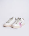 Dolce & Gabbana Portofino Leather Trainers in crisp white. These classic low-top sneakers feature smooth white leather with subtle accents, including a contrasting black stripe at the heel. The sides are adorned with playful pink graphic details, adding a unique and artistic touch.
