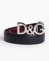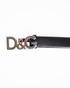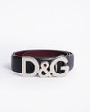 Dolce & Gabbana Logo Belt is a bold statement accessory. Crafted from a high-quality black leather, the belt features a smooth outer surface and a contrasting red leather interior, making it a stylish and versatile piece. Its most prominent feature is the large, eye-catching silver-tone 'D&G' logo buckle, which adds a touch of high-fashion flair.