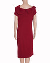 Donna Karan Red Mini Dress is a sophisticated statement piece that combines architectural draping with a bold, high-impact color palette. This elegant cocktail dress is rendered in a vibrant cherry red hue, designed to transition effortlessly from formal daytime events to evening soirées. The garment is defined by its masterful asymmetrical wrap-style bodice, which creates soft, sculptural folds across the torso for a highly flattering, figure-skimming silhouette. Featuring a modern off-the-shoulder neckline.