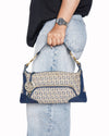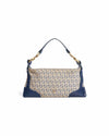 Fendi Vintage Zucchino Canvas Shoulder Bag, the Zucchino print features a smaller, more delicate version of the iconic double "F" monogram, perfectly capturing the minimalist logo-mania of the early 2000s. This archival piece is expertly crafted from durable jacquard canvas in a timeless beige and navy blue palette, reinforced with premium navy leather trim. The structured, baguette-inspired silhouette is elevated by a brushed gold-tone ring hardware on the strap.