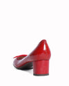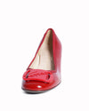 Salvatore Ferragamo Ballet Pumps in a vibrant, high-shine red. These sophisticated heels are crafted from premium patent leather, offering a polished aesthetic that transitions effortlessly from day to evening. The design features a classic rounded toe adorned with the iconic Vara bow in a tonal red finish, accented by a discreetly engraved Ferragamo logo.
