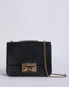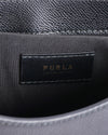 Furla Bella Mini Bag. This chic and compact bag is crafted from beautiful black pebbled leather, offering a refined yet durable finish. The classic flap closure is secured by a prominent gold-tone push-lock, adding a touch of sophisticated hardware. With its versatile chain-link strap, this mini bag is perfect for hands-free convenience, ideal for both daytime outings and evening events.
