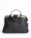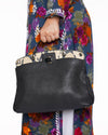 Furla Black/Animal Print Leather Piper Dome Satchel Handbag