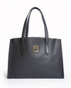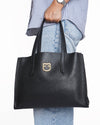 Furla Tote Bag is an ideal accessory for work and everyday carry. Crafted from high-quality Black Grained Leather, the structured shape ensures it stands upright and maintains its elegant silhouette. The design is subtly branded with a distinctive gold-tone arched logo hardware at the center, characteristic of modern Furla designs.