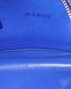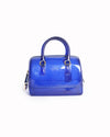 Furla Candy Jelly Top Handle Bag is rendered in high-grade semi-transparent PVC in a vibrant royal blue. A standout feature is the seamless "jelly" construction, which is accented by polished silver-tone hardware and a signature logo-engraved padlock hanging from the side zipper. Finished with sturdy, integrated top handles and a discreet embossed "FURLA" logo on the front.