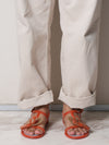 Preloved Furla Clear Orange Silicone Flats has Adjustable Ankle Straps with Gold - Toned Hardware and Bow Embellishment on the Front. Made in Italy. These Furla Orange Flats give off Perfect Beach Chic Look.