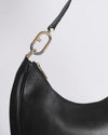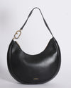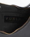 Furla Halfmoon Shoulder Bag in Black, crafted from smooth leather with a minimalist crescent silhouette. The bag features a subtle gold Furla logo embossed on the front, complementing its understated yet sophisticated design. Perfect for both casual and formal occasions, this versatile piece offers timeless Italian style with a modern edge.