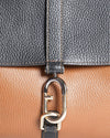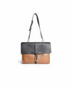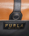 Furla Narciso Color-Block Shoulder Bag is rendered in premium grained calf leather in a sophisticated black and tan palette. The design is defined by its contemporary structured messenger silhouette, featuring a sophisticated color-blocked frame. A standout feature is the architectural polished silver-tone "Arc" hardware anchored on the central leather strap. Finished with a reinforced leather shoulder strap, protective silver-tone base feet, and a spacious fabric-lined interior.
