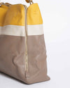 The Furla Twiggy tote in yellow presents a vibrant and contemporary design. The bag features a striking color-blocked pattern, with a bold yellow dominating the upper portion, contrasted by a band of white. The overall silhouette appears spacious and practical, suggesting it's a stylish yet functional option for everyday use. The subtle Furla branding adds a touch of understated elegance to this eye-catching tote.
